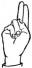 На ћирилици написано ОЛИВЕРА РУЧНОВ састоји се из 13 слова [?]. Исписано ћириличном једноручном азбуком за глувонеме: